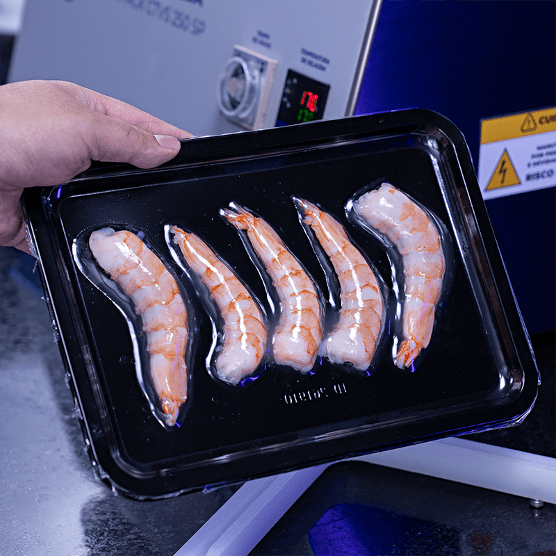 melhora a visibilidade e aparência dos produtos na bandeja. Essa tecnologia eleva a qualidade das embalagens e a percepção do cliente sobre o produto,