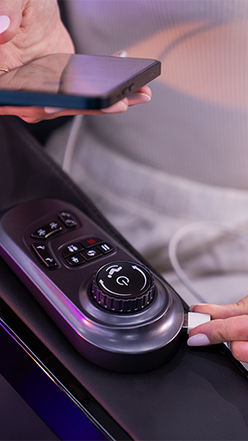 Controle os movimentos e as técnicas de massagem pelo comando por voz ou, se preferir, utilize o controle remoto com tela em alta definição e as teclas de atalho no apoio de braço para personalizar sua experiência.