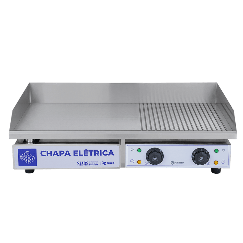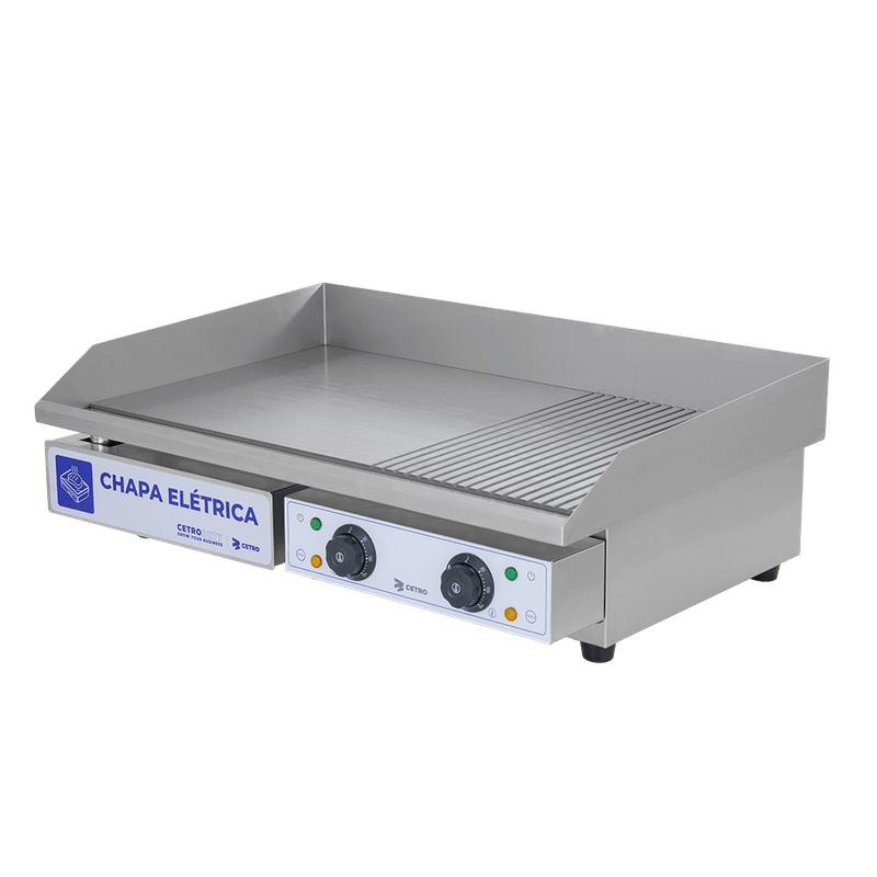 Desenvolvida para rotinas intensas, a Chapa Elétrica com Grelha da Cetro coloca o controle total em suas mãos, permitindo garantir o ponto perfeito de cada preparo do primeiro ao último pedido.