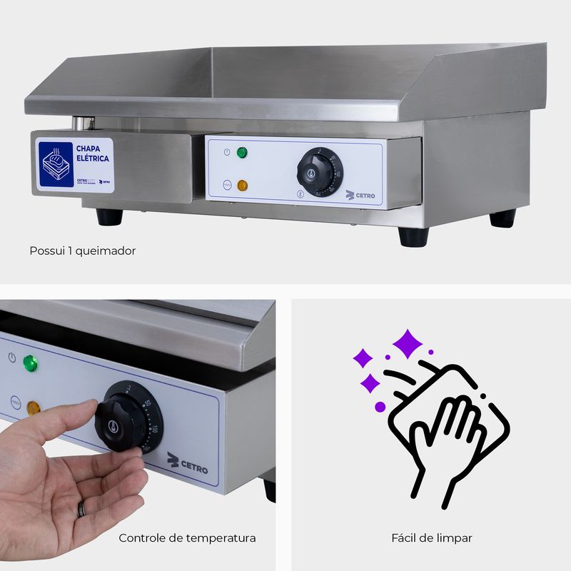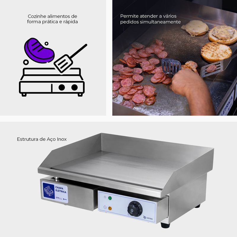 Desenvolvida para rotinas intensas, a Chapa Elétrica da Cetro coloca o controle total nas mãos do profissional, permitindo garantir o ponto perfeito de cada preparo do primeiro ao último pedido.