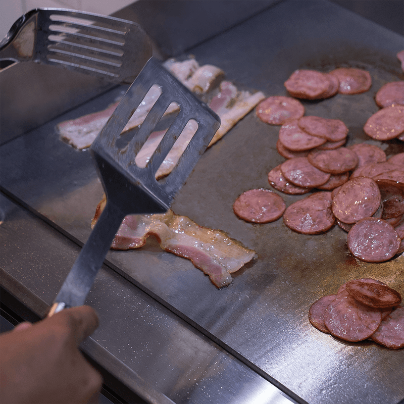 Trabalhe continuamente e sem interrupções. Com um sistema de escoamento integrado para descartar as gorduras e os líquidos excedentes do preparo, a Chapa contribui para uma operação mais higiênica, segura e prática no dia a dia.