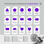 Esse modelo pode compactar até 3.600 comprimidos por hora de trabalho, necessitando apenas do abastecimento de material na cuba do equipamento. Com alta pressão e controle ajustável, a Compressora Automática de Comprimidos Pequenos da Cetro produz inúmeros tamanhos de comprimidos redondos e garante que o processo seja otimizado.