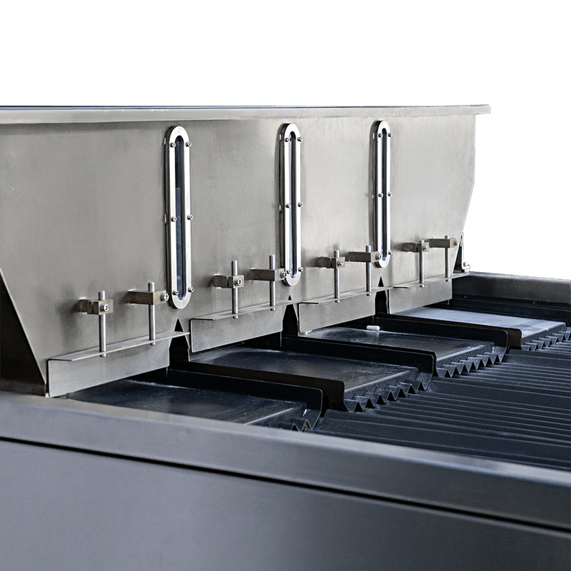 Esse dispositivo pode ser utilizado para separar e contar de modo eficaz os materiais grandes, irregulares e viscosos, sem necessidade de substituir qualquer molde ou componente. Além disso, a estrutura do bocal de envase é removível e evita que o produto acabe bloqueando a saída, facilitando o fluxo da operação.