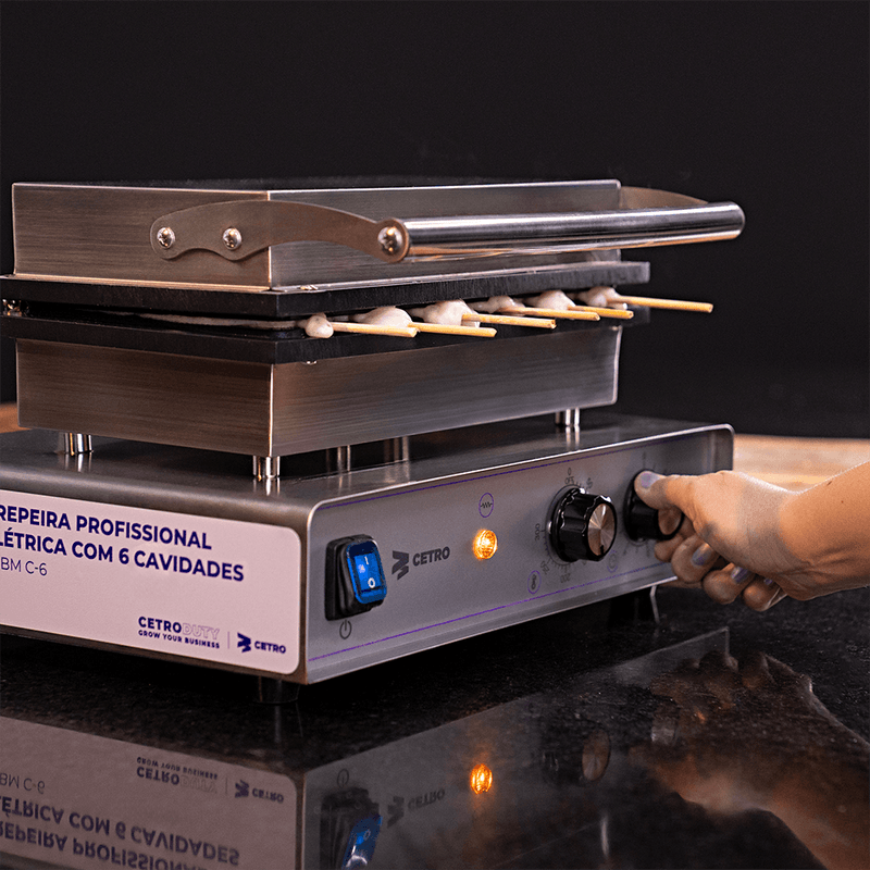 Com a Crepeira Profissional Elétrica da Cetro, é o chef que está no controle da crocância e do sabor de cada produção.