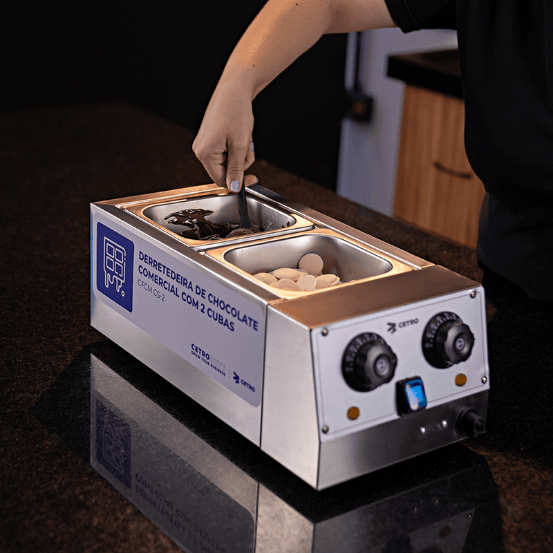 Garanta uma textura perfeita com a Derretedeira de Chocolate da Cetro e prepare sobremesas gourmet e artesanais com recheios e coberturas impecáveis.