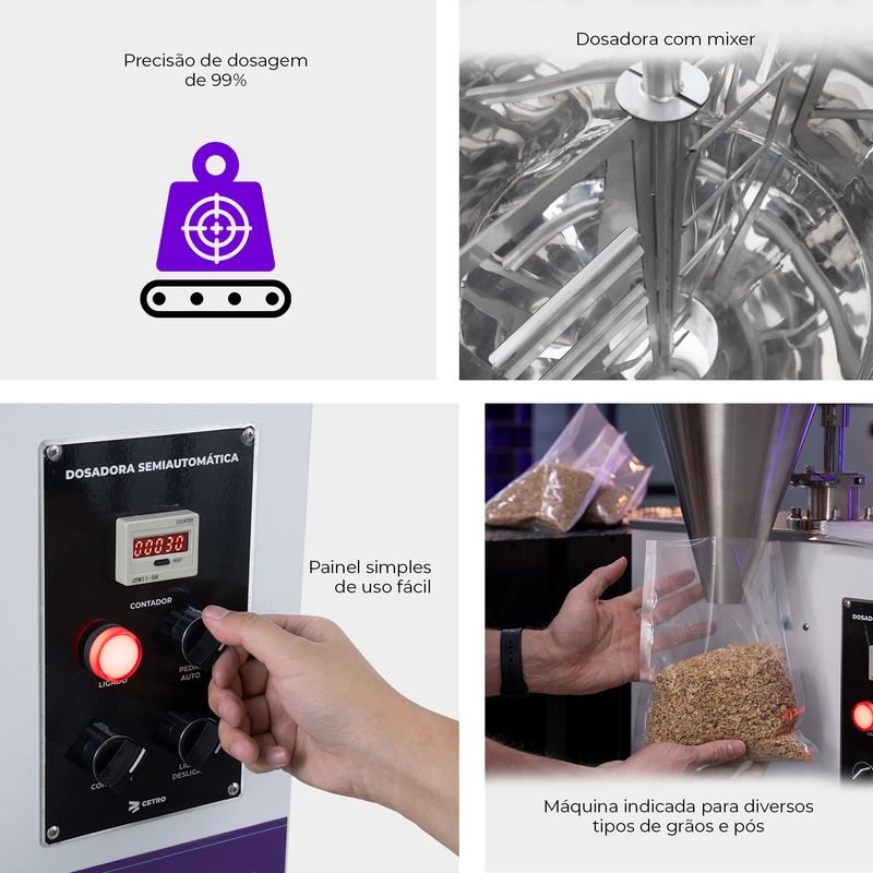 A Dosadora Semiautomática para Enchimento de Grãos e Pós com Mixer CSDM VC3-1000 M da Cetro é ideal para atender demandas que necessitam da dosagem precisa e eficiente de grãos e pós através de um sistema que utiliza dosagem volumétrica.
