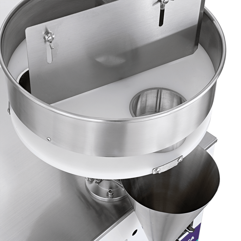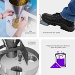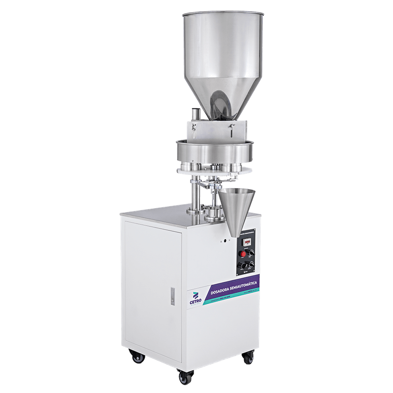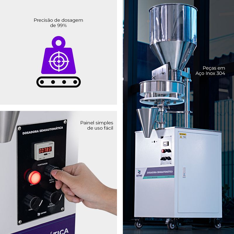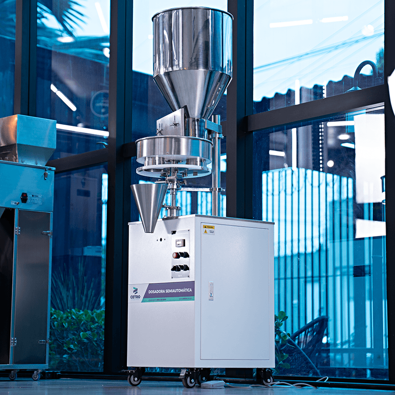 O ajuste da medida de dosagem feito por caneca é simples e garante que a máquina consiga dosar sempre a mesma quantidade, evitando grandes variações no volume dosado e desperdício de produtos. Seu modo de operação é acionado por pedal, o que é facilmente controlado pelo operador, tornando o processo de escoamento do produto muito mais prático.