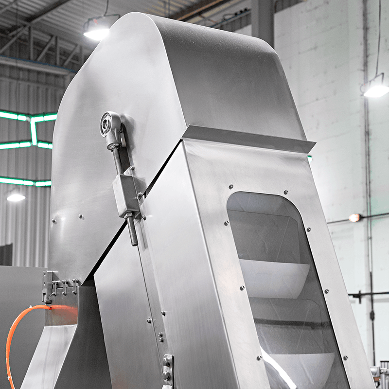 panelas vibratórias organizam e direcionam os produtos de forma contínua até a Empacotadora, mantendo o