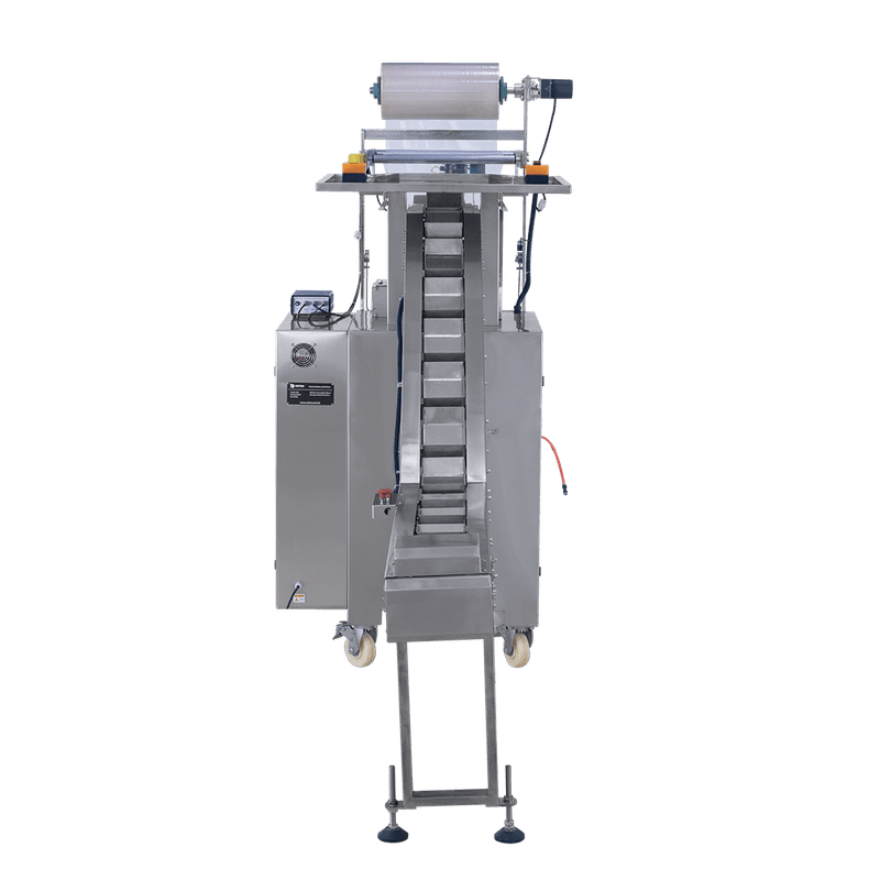 Com uma esteira de canecas, que transporta os produtos na máquina, e uma esteira de saída, que coleta as embalagens finalizadas, a Empacotadora Automática com Esteira de Canecas CAPM 410 BF otimiza o fluxo da produção.