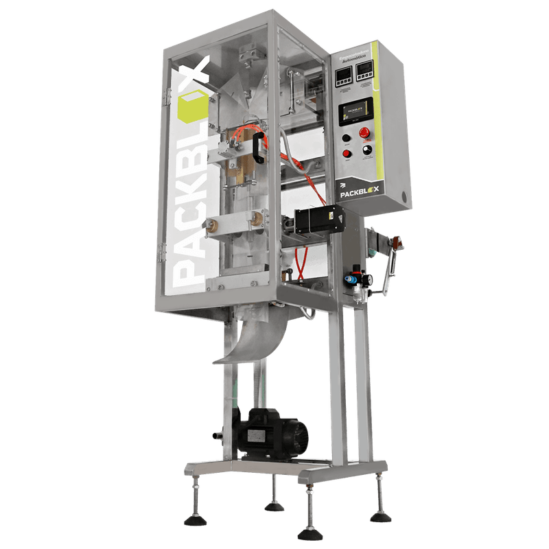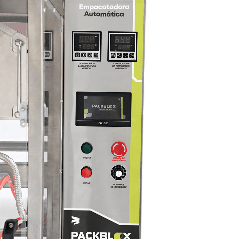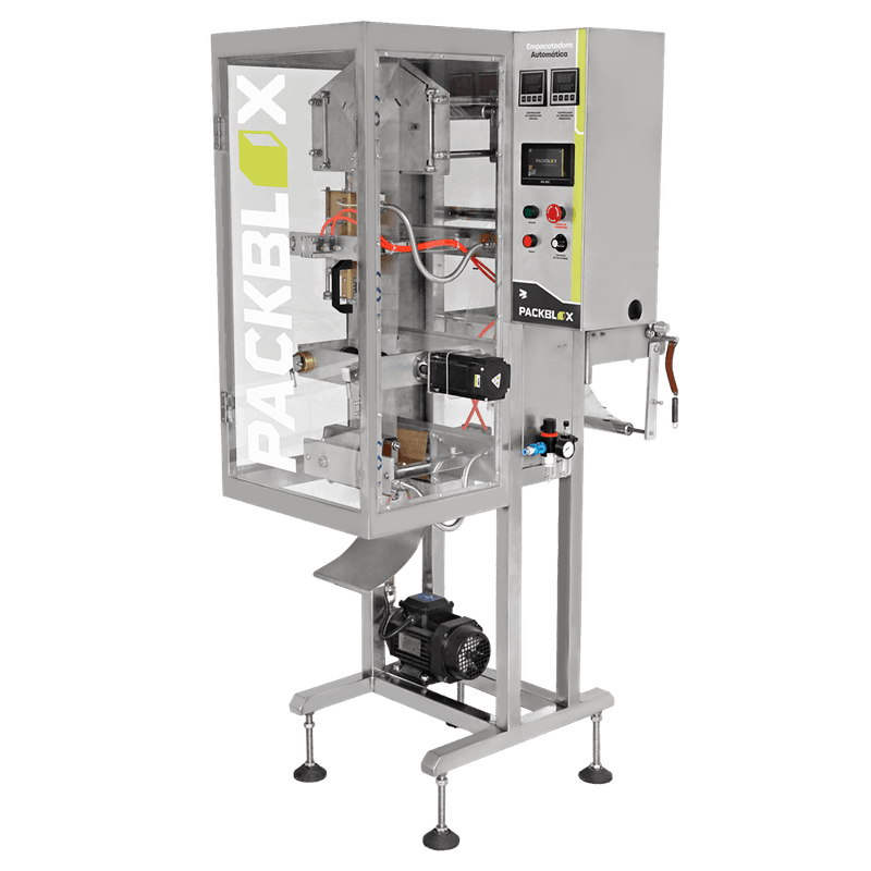 Com 777 x 985 x 1800 mm (C x L x A) e 80 kg, a Empacotadora da Packblox é um equipamento robusto de alta capacidade produtiva