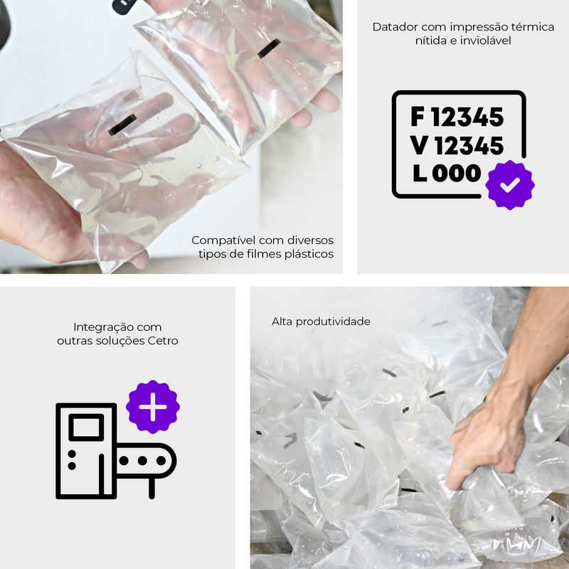 Com um datador automático de termotransferência, a máquina realiza uma impressão nítida e inviolável, fortalecendo a segurança e a conformidade regulatória.