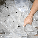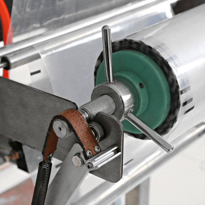 O equipamento utiliza uma bobina de filme plástico PE monocamada para formar a embalagem