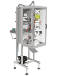 A Empacotadora forma embalagens back-seal de 60-150 mm de altura e 150 mm de largura com precisão e eficiência