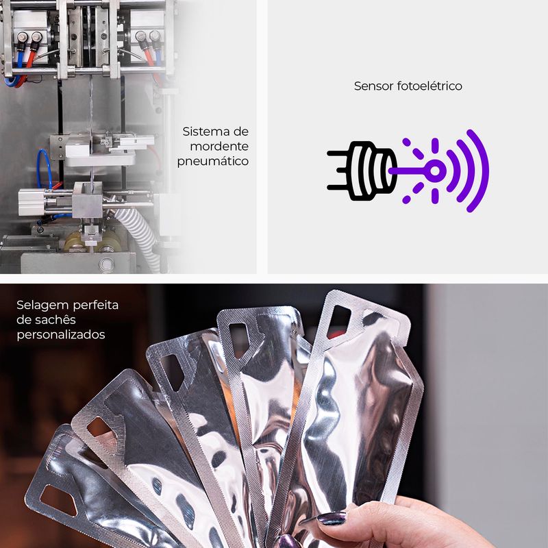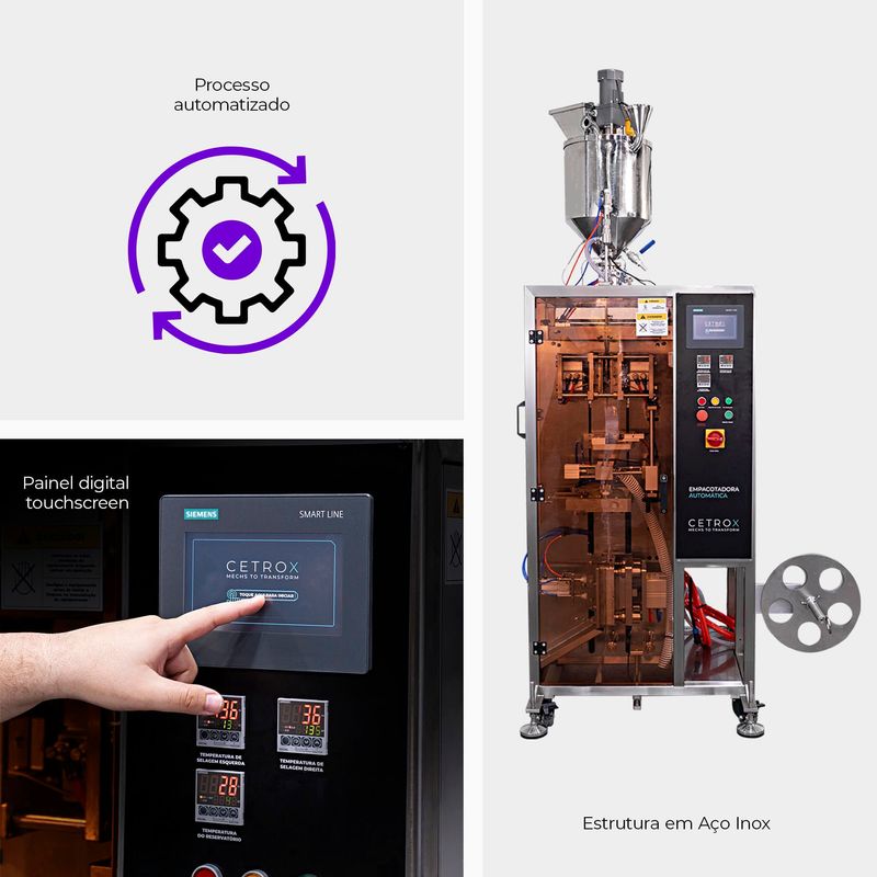 apelo visual e identidade própria.A Empacotadora Automática de Sachês Personalizados CAPM IS VP-50 da Cetro reúne alta tecnologia e capacidade de produção ao