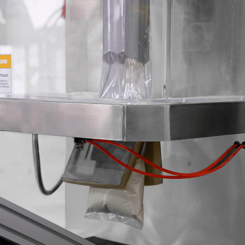 ESTRUTURAS DE AÇO INOX E PADRÃO SANITÁRIOTodo o conjunto é fabricado em Aço Inox, garantindo resistência mecânica, durabilidade e elevado padrão sanitário. Na Empacotadora Volumétrica, as partes em contato com o produto são de