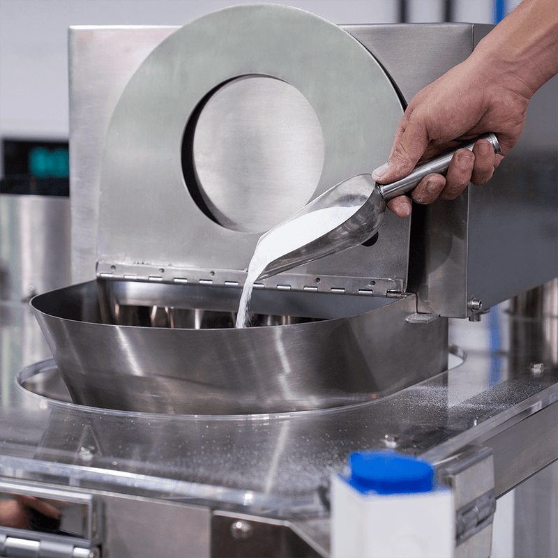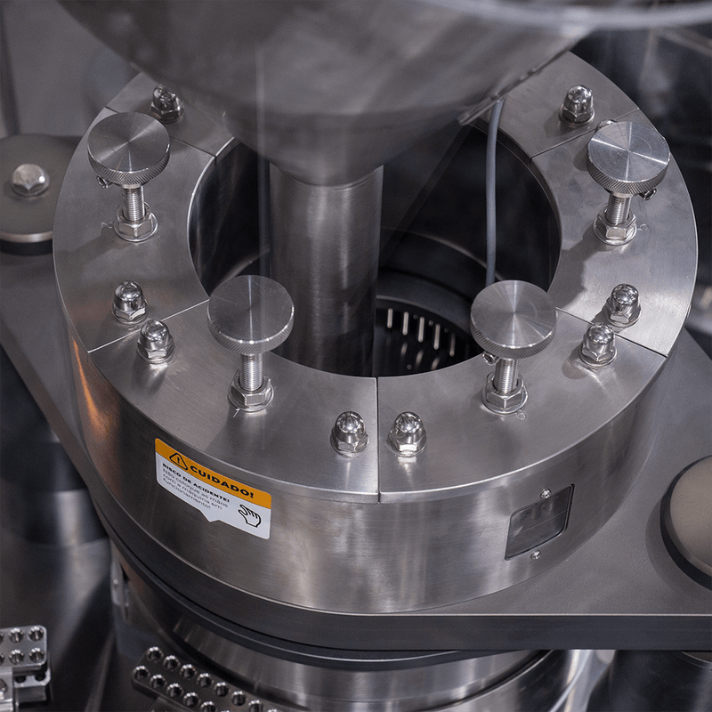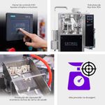 Através do seu sistema que aumenta a eficiência dos seus processos, a máquina conta com 3 estágios para nivelação do elemento dosado por pressão, tornando o preenchimento ideal para inúmeros tamanhos de cápsulas.