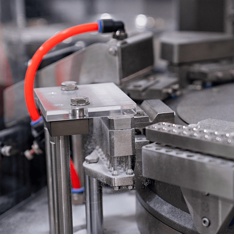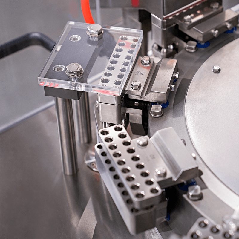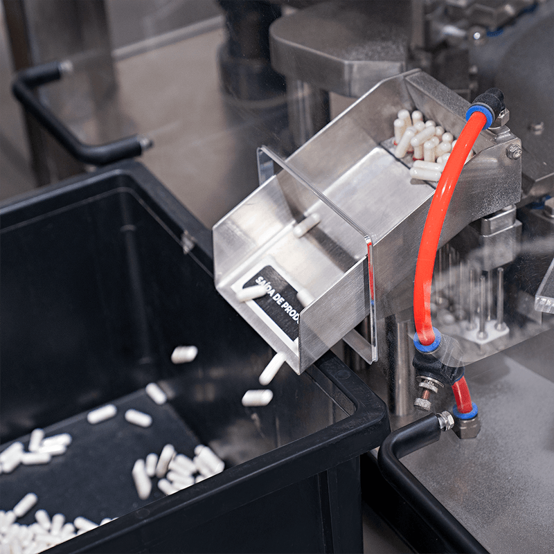 Após a dosagem, as partes inferiores das cápsulas ficam com o produto dosado e partem para o próximo processo. Nele, as cápsulas que não receberam o produto dosado são rejeitadas e as demais fechadas com a parte superior da cápsula, finalizando o processo. Dessa forma, as cápsulas que realizaram todas as partes do processo, são ejetadas.