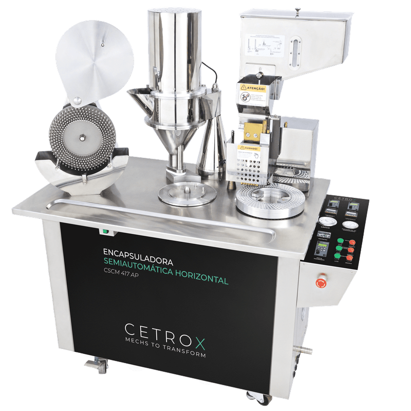 A Encapsuladora Semiautomática Horizontal CSCM 417 AP da Cetro é equipada com dispositivos de controle e contagem automática, sendo capaz de preencher as cápsulas de forma automática. Além disso, pode ser customizada para realizar o processo em outros tamanhos específicos.