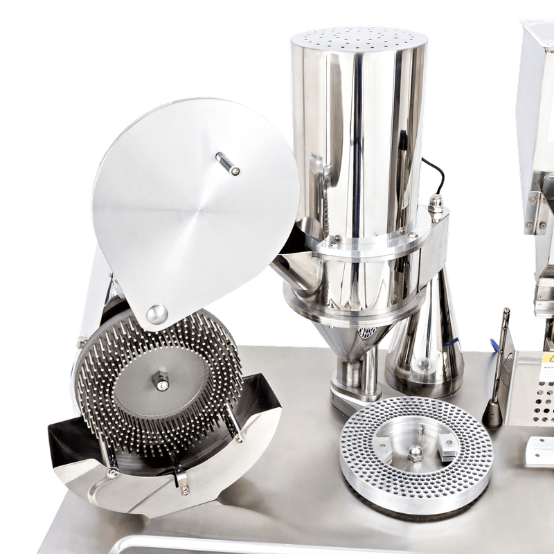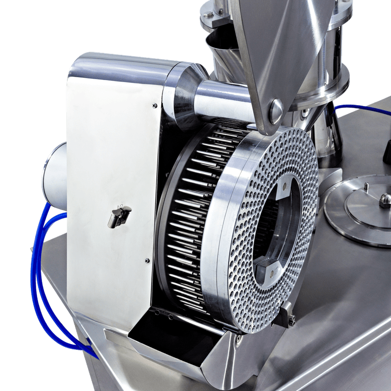 O volume de preenchimento da substância em cada cápsula pode ser ajustado através da quantidade de rotações do disco. O alimentador de pó possui dispositivo para a regulagem de quantidade e essa funcionalidade exclusiva resulta em uma produção mais rápida, resultando em um produto que atende às especificações e normas mais rígidas do mercado.