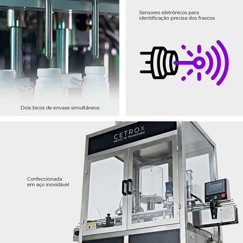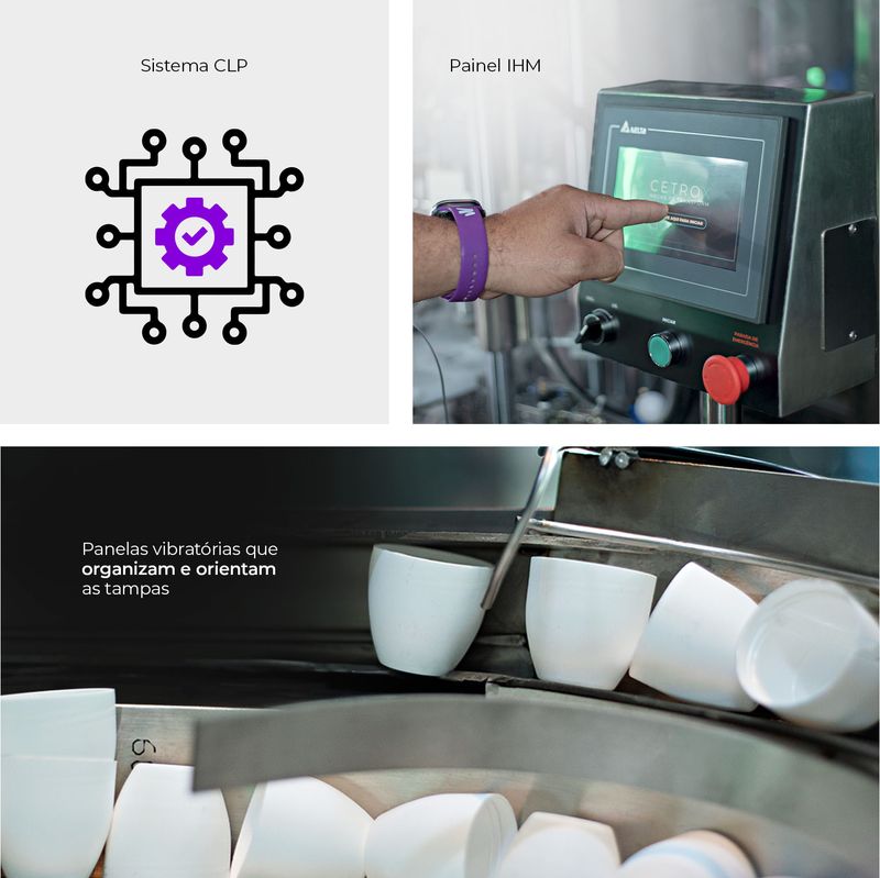O cliente Cetro pode customizar a máquina para deixá-la compatível com os frascos e as tampas de seus produtos. Para saber mais sobre a personalização,
