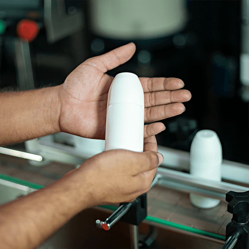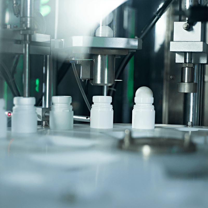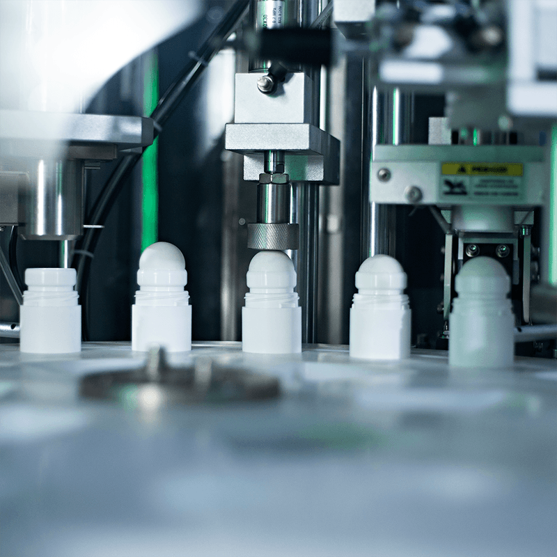 otimizar a fabricação de frascos roll-on. A linha de produção é eficiente, rápida e necessita de poucos operadores, já que o equipamento realiza todos os 4 processos em