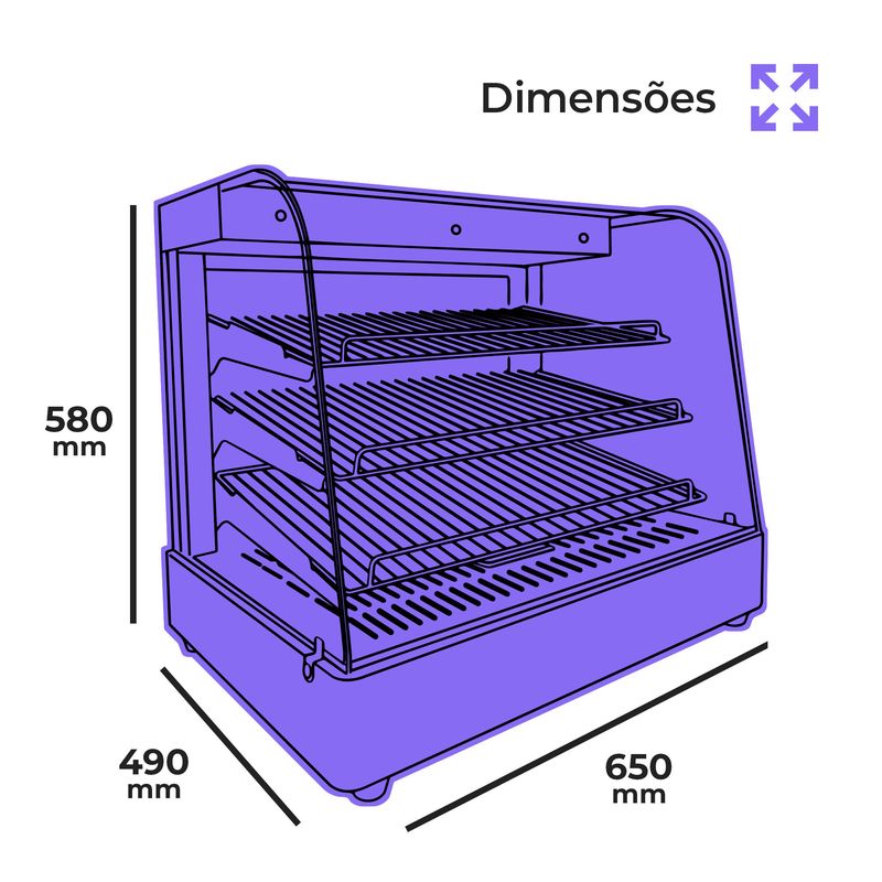 Acomode de 40 a 50 salgados com facilidade em 3 prateleiras ajustáveis