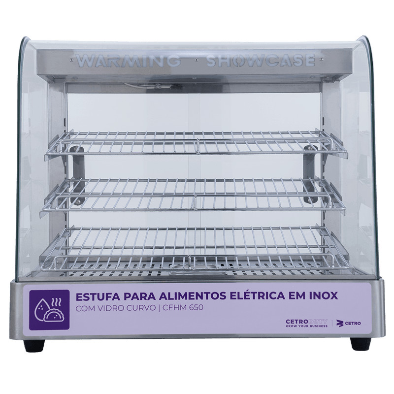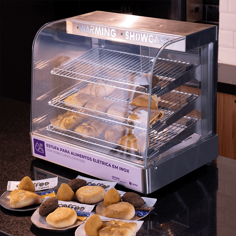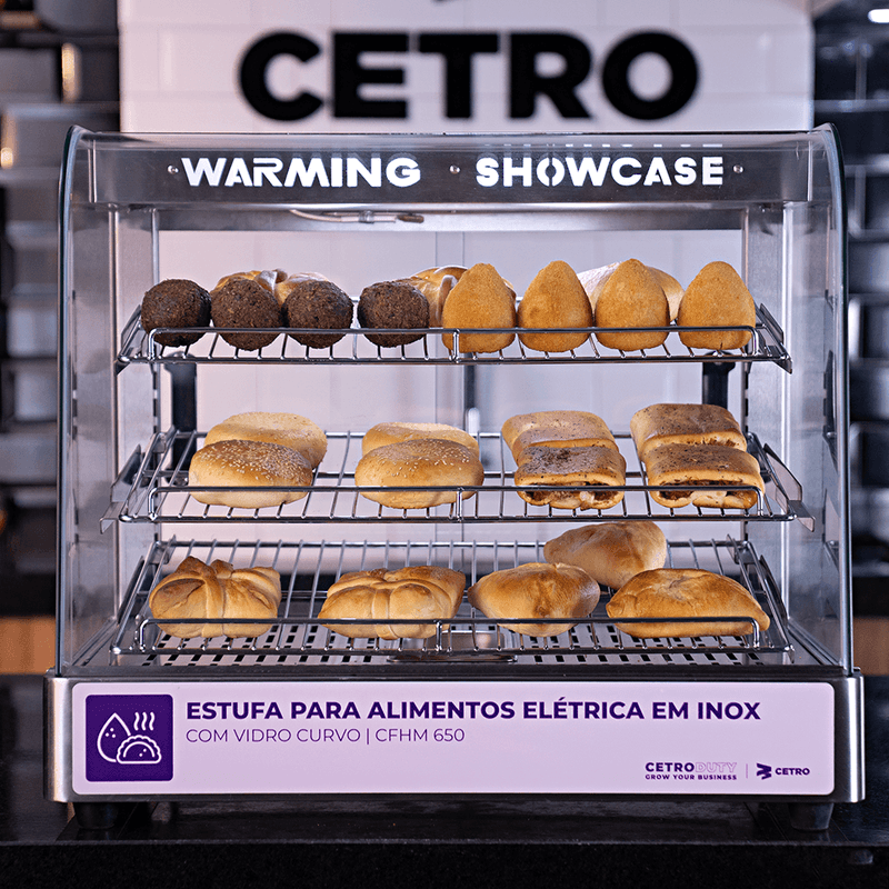 Seus salgados quentes e frescos com a Estufa para Alimentos CFHM 650 da Cetro. Mantenha suas coxinhas, esfirras, empadas e tortas na temperatura ideal para servir sempre com rapidez e qualidade.