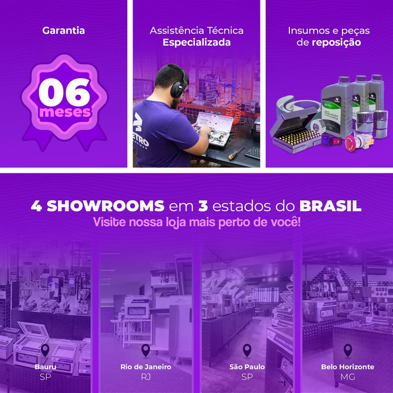 Possui potência de 1,3 kW, oferecendo eficiência e praticidade para facilitar a rotina diária de negócios alimentícios