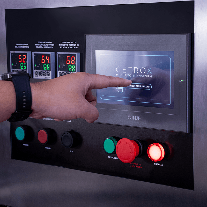 controladores de temperatura independentes, assegurando selagens firmes, uniformes e resistentes que garantem proteção total ao produto durante o transporte e o armazenamento.