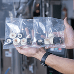 Após o abastecimento manual das peças na esteira do equipamento, seu sistema automático executa a selagem vertical e horizontal e o corte individual de cada unidade em um único fluxo sincronizado.
