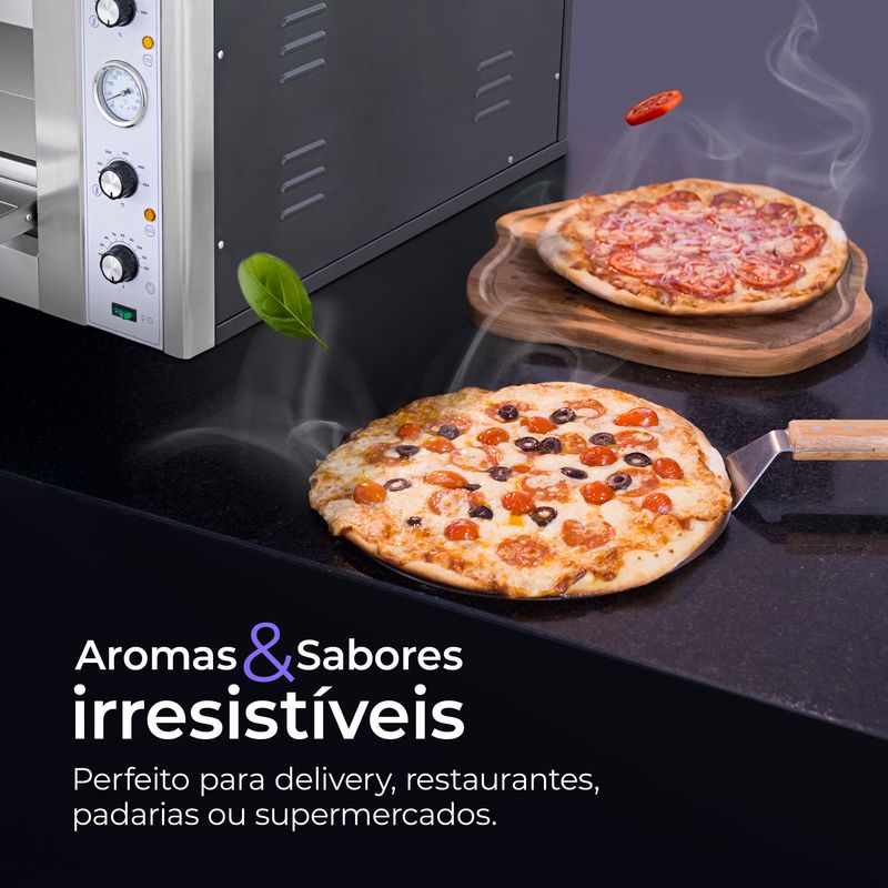 Aproveite a ampla pedra refratária para assar pizzas e pães ao mesmo tempo e atender seus clientes com excelência!