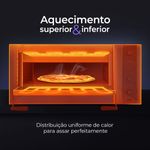 As resistências superior e inferior distribuem o calor uniformemente pela câmara. Quando o termostato atingir a temperatura desejada, coloque os alimentos na câmara para assar. Ajuste o temporizador e o Forno avisará quando os alimentos estiverem prontos!