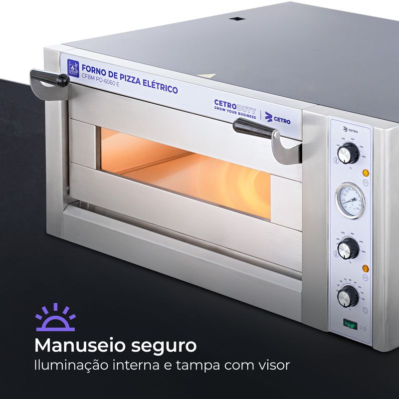 O Forno de Pizza Elétrico CFBM PO-6060 E é um equipamento prático, seguro e que proporcionará assados de qualidade. Com ele, é o chef que está no controle da crocância e do sabor de cada refeição.