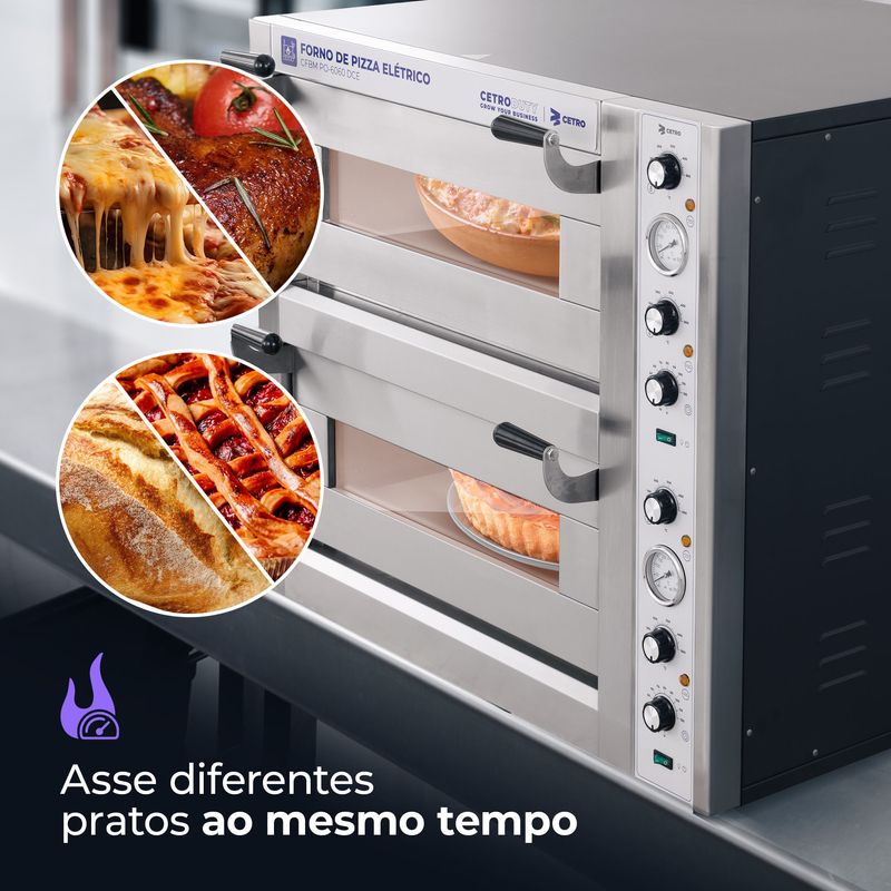 O Forno de Pizza Elétrico Dupla Câmara CFBM PO-6060 DCE é um equipamento prático, seguro e que proporcionará assados de qualidade. Com ele, é o chef que está no controle da crocância e do sabor de cada refeição.