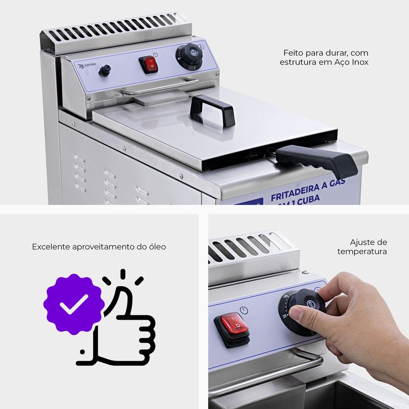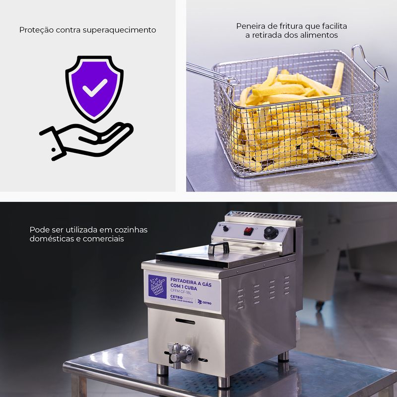 Cuba com capacidade de 18 litros, ideal para operações contínuas e alto volume de fritura