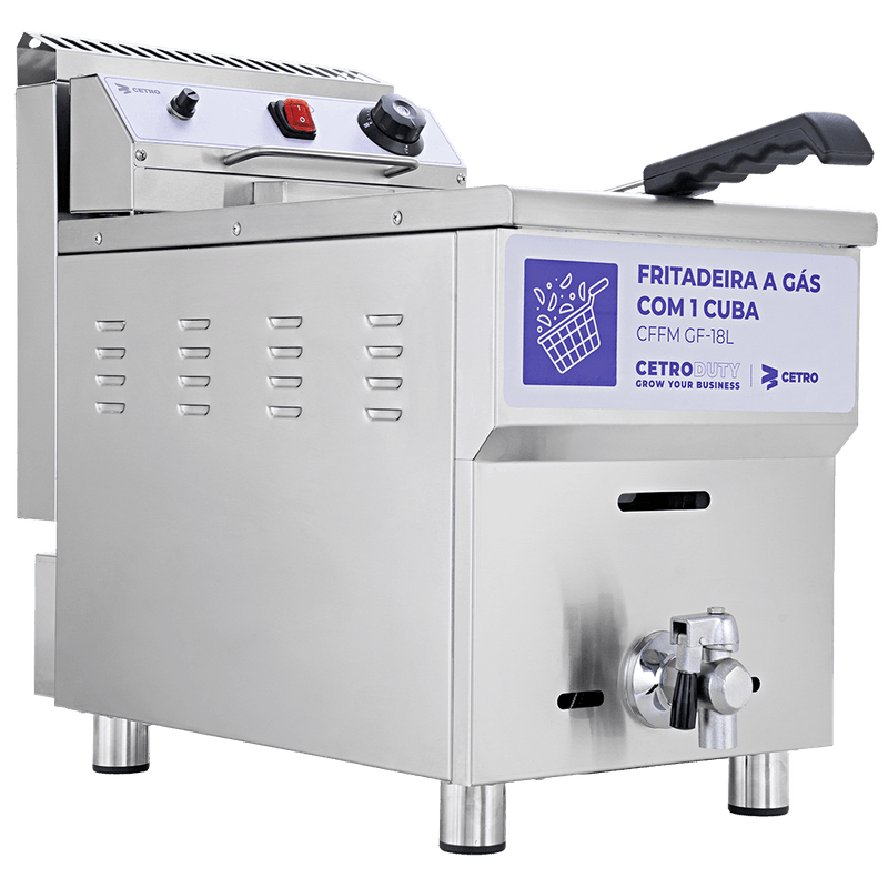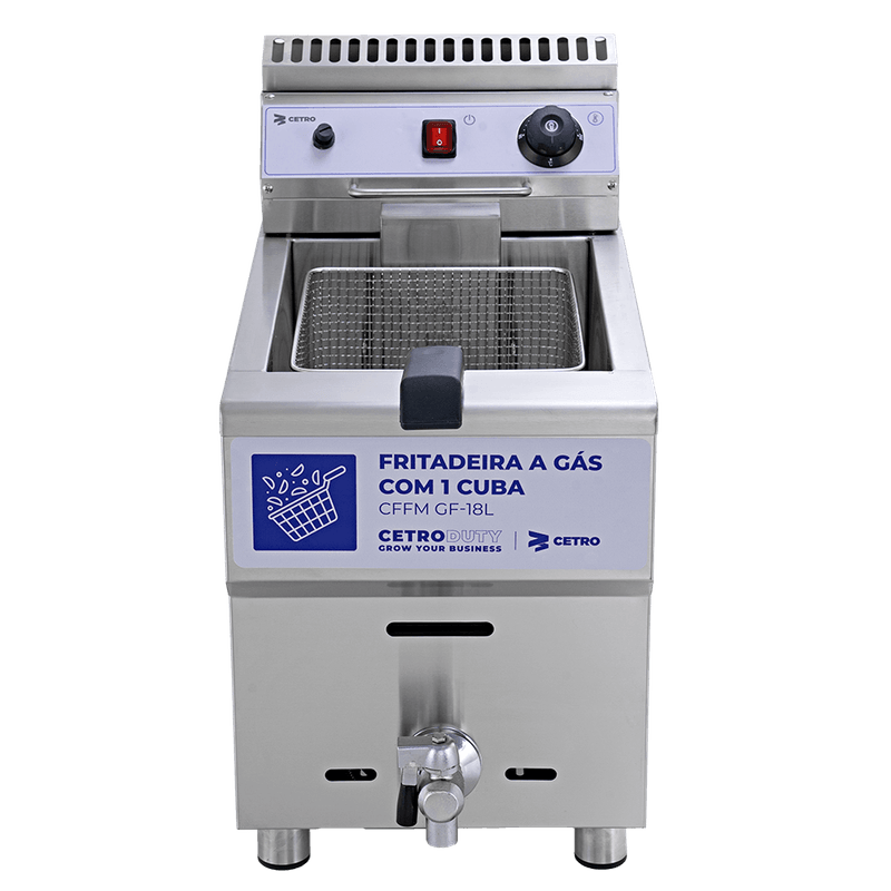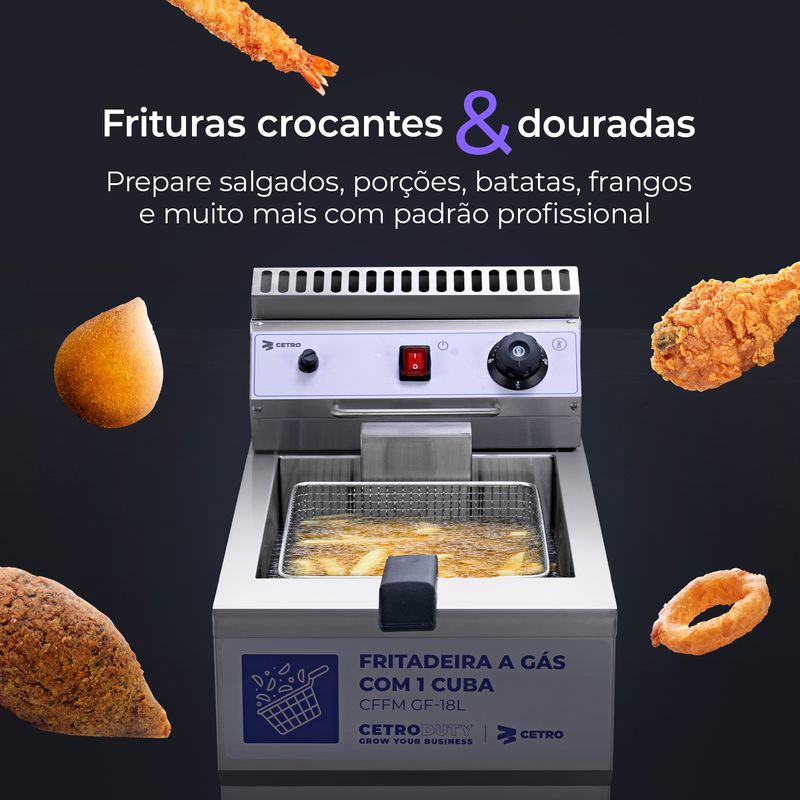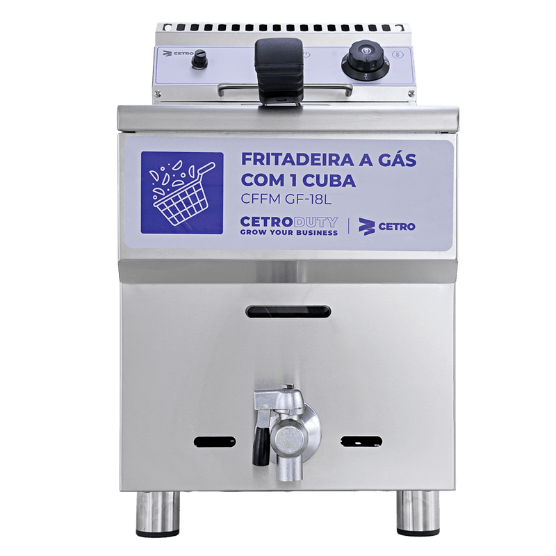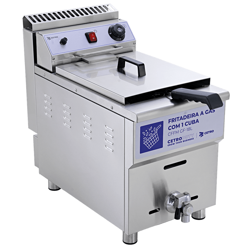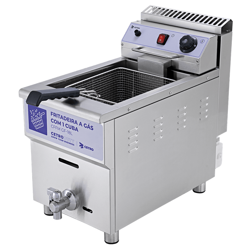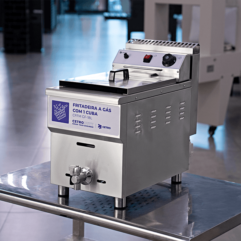 A Fritadeira a Gás com 1 Cuba 18 Litros CFFM GF-18L é um equipamento confiável, seguro e de alto desempenho que entrega frituras uniformes, permitindo total controle sobre o ponto ideal e a qualidade de cada receita.