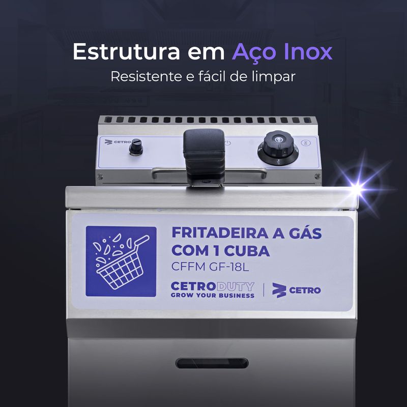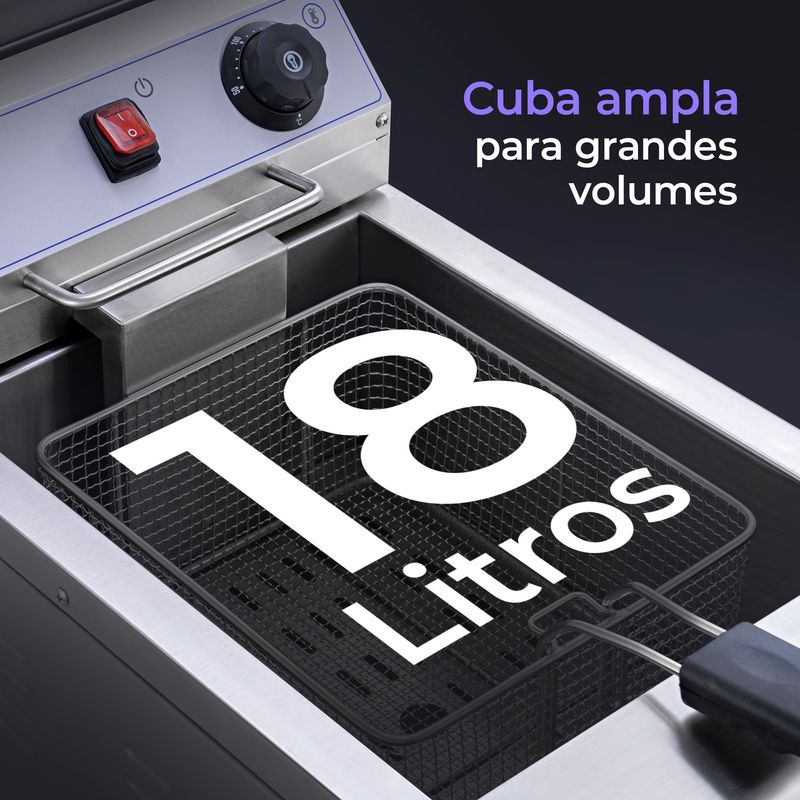 Cuba com capacidade de 18 litros, ideal para operações contínuas e alto volume de fritura
