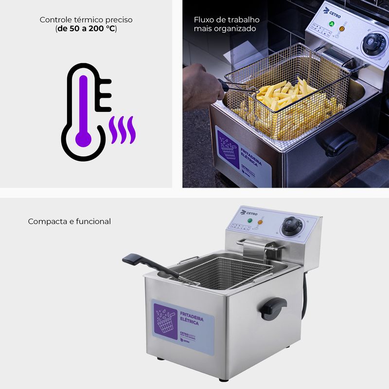 Prepare alimentos extremamente crocantes com a Fritadeira Elétrica da Cetro. O segredo de toda lanchonete, hamburgueria, restaurante ou food truck de sucesso está no sabor irresistível dos alimentos fritos no ponto certo!