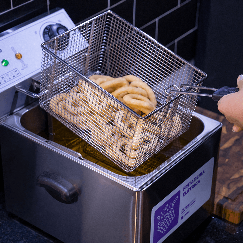A Fritadeira Elétrica com 1 Cuba 8 Litros CFFM EF-8L é um equipamento prático, seguro e que oferece uma fritura uniforme e de qualidade. Com ela, é o chef quem está no comando da crocância e do sabor de cada refeição.