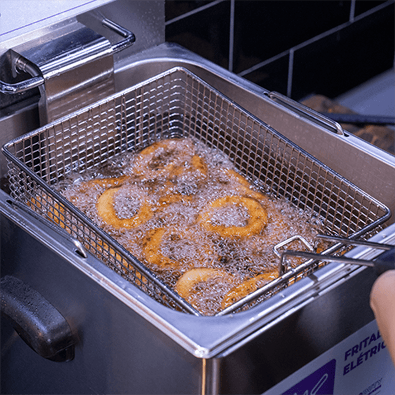 Mantenha a qualidade das refeições preparadas do primeiro ao último pedido! Utilize a tampa do equipamento para facilitar o aquecimento do óleo, conter respingos e favorecer a limpeza do local de trabalho.
