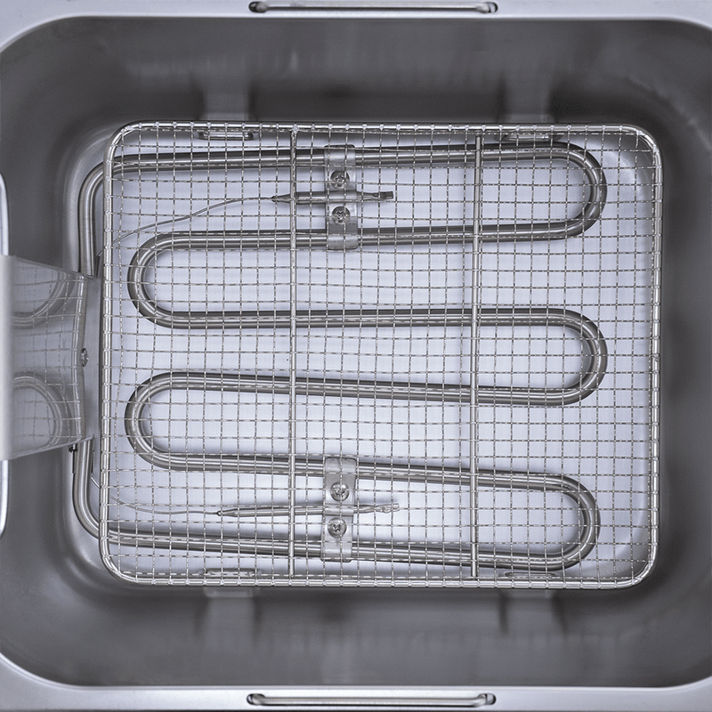 Preencha metade da cuba com óleo. Conecte a máquina a uma fonte de energia elétrica de 110 V, aperte o botão de energia para ligar e gire o controlador até a temperatura ideal entre 50 e 200 °C.