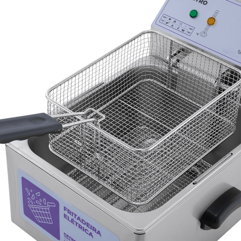 Aproveite a cuba espaçosa, a peneira com alça auxiliar e a tampa protetora da Fritadeira da Cetro para tornar os preparos mais rápidos, seguros e organizados.