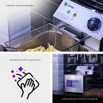 A Fritadeira Elétrica com 1 Cuba 8 Litros CFFM EF-8L é um equipamento prático, seguro e que oferece uma fritura uniforme e de qualidade. Com ela, é o chef quem está no comando da crocância e do sabor de cada refeição.