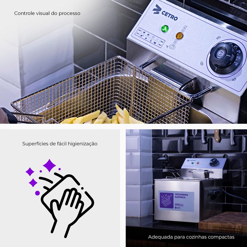 Tenha agilidade nos horários de muito movimento com a Fritadeira Elétrica da Cetro. Frite alimentos diversos de forma prática, segura e sem sujeira e ofereça refeições irresistíveis a seus clientes.