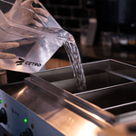 Após 10 minutos de aquecimento, prepare macarrão sem parar! As porções de macarrão no cesto são submersas na água fervente da cuba e ficam prontas para servir em apenas 5 minutos.