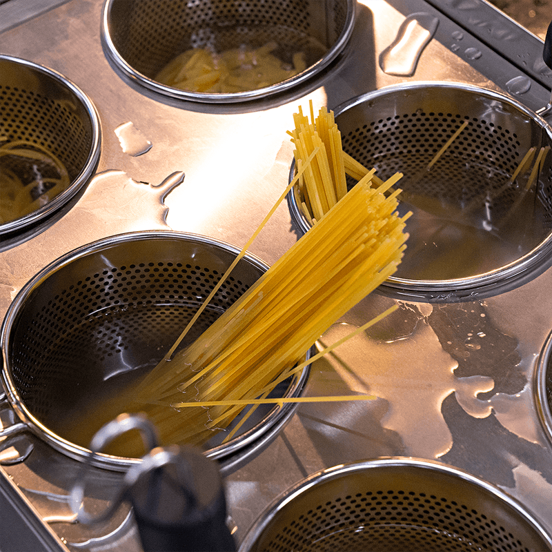 Cozinhe rapidamente massas frescas ou pré-cozidas de espaguete, fusilli, talharim e outros tipos de macarrão para ampliar seu cardápio e impressionar seus clientes.
