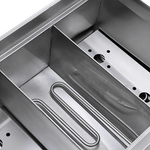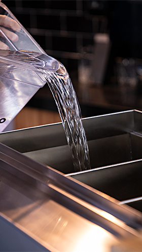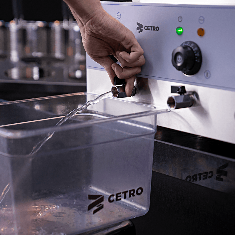 Remova a água usada no cozimento de forma simples e segura com as torneiras de esgotamento individuais das cubas, evitando queimaduras e possíveis empecilhos na organização.