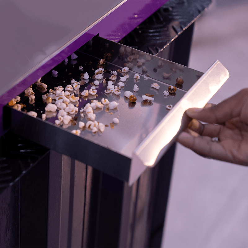 Seu design moderno facilita a manutenção e sua camada interna pulverizada torna a limpeza simples. O equipamento conta ainda com uma gaveta prática para desprezar os milhos que não estouraram.