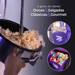 Conecte a máquina em uma fonte de energia elétrica e a ligue para aquecer seu interior. Em seguida, adicione os ingredientes, acione o equipamento e assista ao espetáculo: em apenas 3 minutos, uma panela cheia de pipoca fresca, quentinha e irresistível.