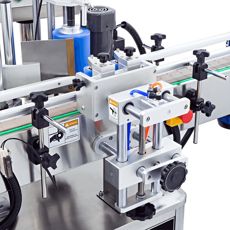 Além disso, o novo modelo conta com um sistema de freios que controla a passagem do frasco até o sensor de embalagem, proporcionando uma maior precisão na hora de rotular o produto.